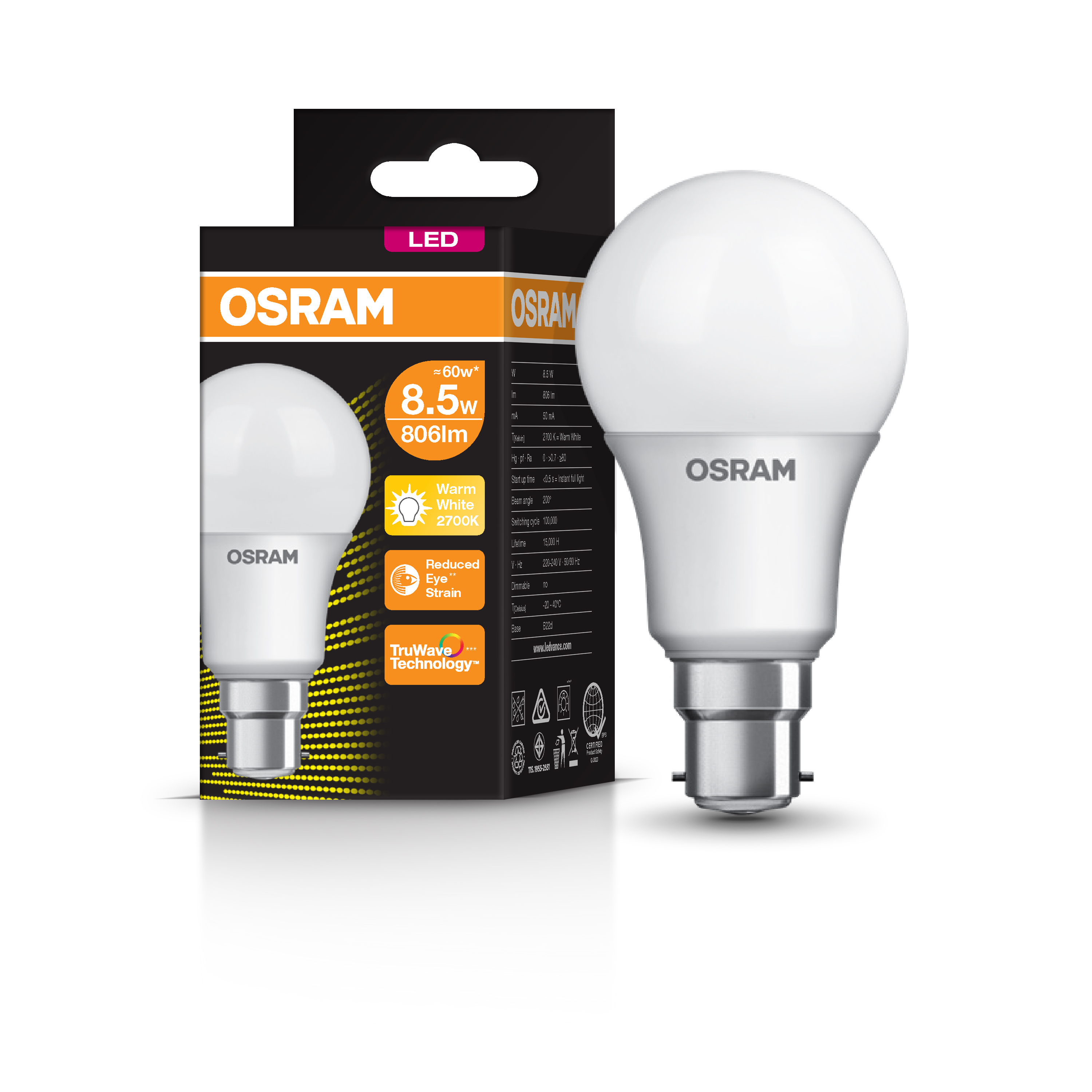 | LED VALUE CLAS A 8.5 W/6500 K B22d GEN4 | B22d | 8.5 W | 220…240 V | 15000 h | 806 lm | 60 W | 180 ° | No |
