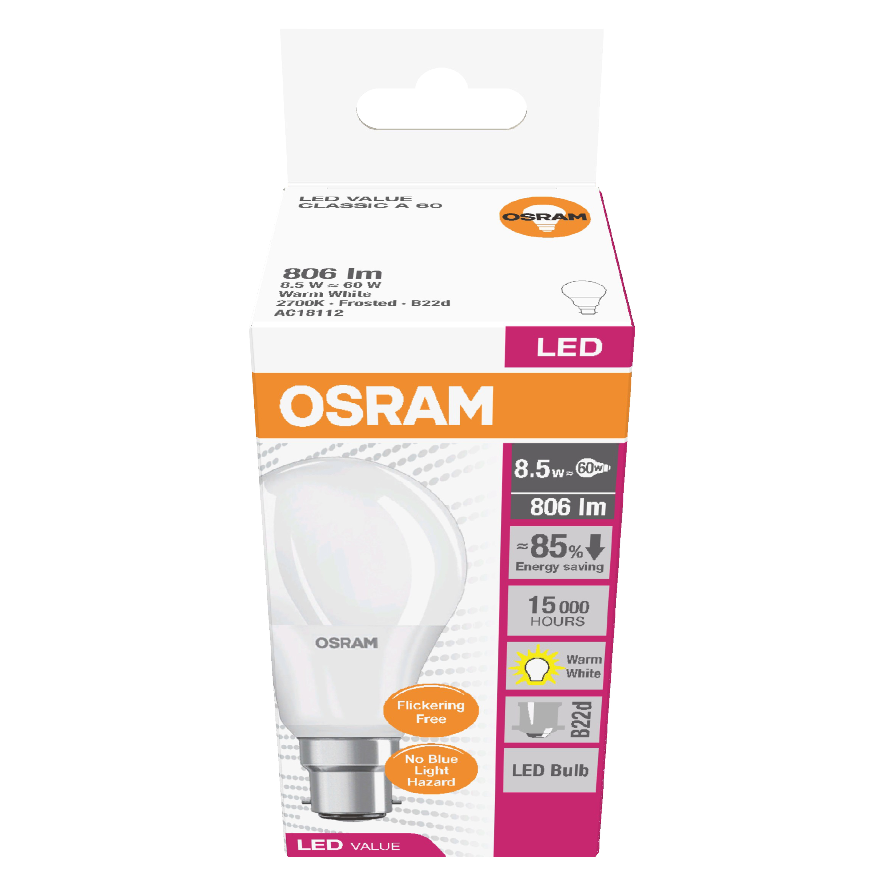 | LED VALUE CLAS A 8.5 W/2700 K B22d GEN4 | B22d | 8.5 W | 220…240 V | 15000 h | 806 lm | 60 W | 180 ° | No |