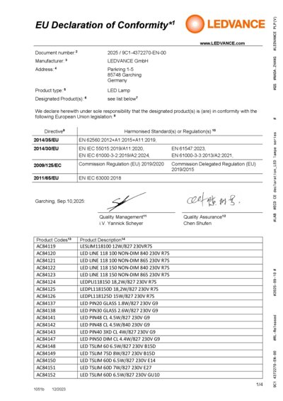 Product remark | All technical parameters apply to the entire lamp, Due to the complex production process for light-emitting diodes, the typical values shown for the technical LED parameters are purely statistical values that do not necessarily match the actual technical parameters of each individual product, which can vary from the typical value |