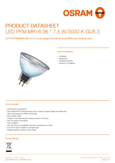 | Order reference | LPMR165036 7,5W |