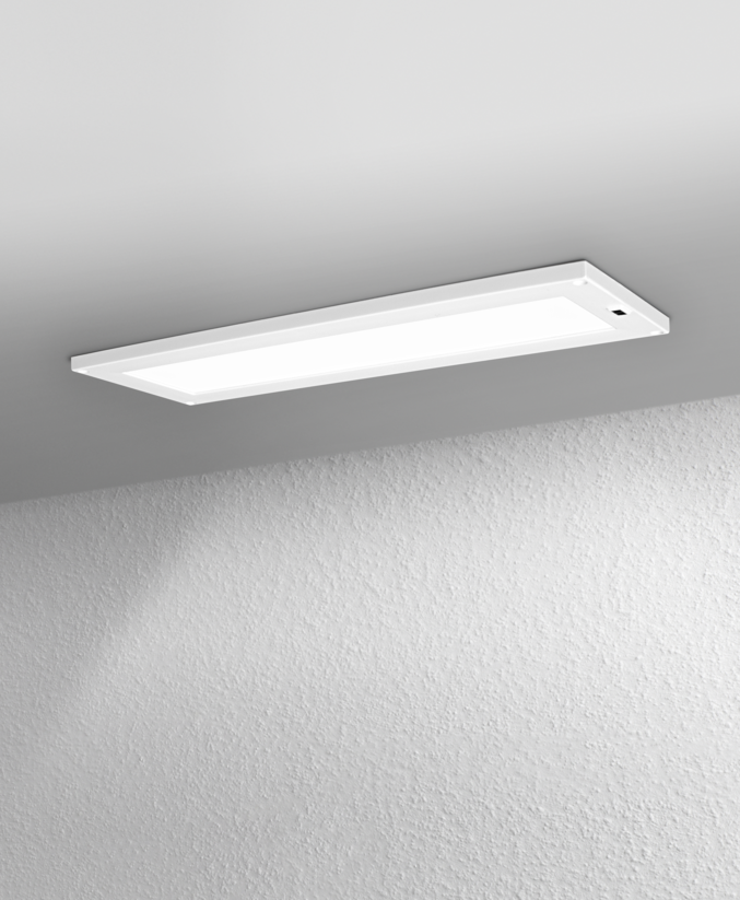Are you looking for an extremely flat under cabinet luminaire, whose warm white light perfectly illuminates Aunt Sophie's vases on the shelf? Would you prefer not to have to fumble about looking for a switch, rather simply use a gesture to switch on and off and dim the light? Then the Cabinet LED Panel is the ideal solution for you for showcasing your treasures.