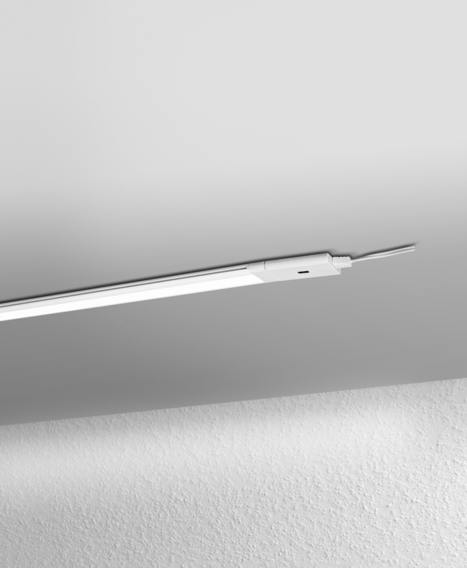 The choice is yours with the Linear LED Flat. The durable, energy-efficient luminaires can be combined easily with one another and switched on and off either with a switch or with no contact at all. And if that is still not enough choice for you: the Linear LED Flat comes either with warm white or cold white light and in different installation lengths. Happy combining!