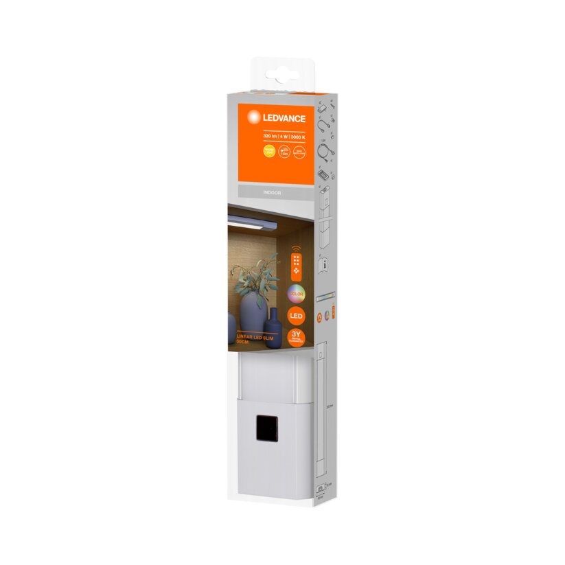 Would you like to combine up to ten under cabinet luminaires with one another? Regardless of whether you choose the variant whose warm white light you can switch on and off without contact, or whether you prefer the remote-controlled RGBW variant that you can use to create different light colors, the Linear LED Slim is always the right choice.